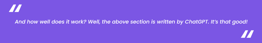 The output created by ChatGPT is actually in a language that we can understand. It doesn’t sound cryptic and certainly doesn’t sound like an AI system that tries too hard. Being built on extensively large language models, the latest versions of ChatGPT can converse, write, and create content that an average human could produce. Yes, it misses the mark sometimes, but it’s very reliable for the most part.